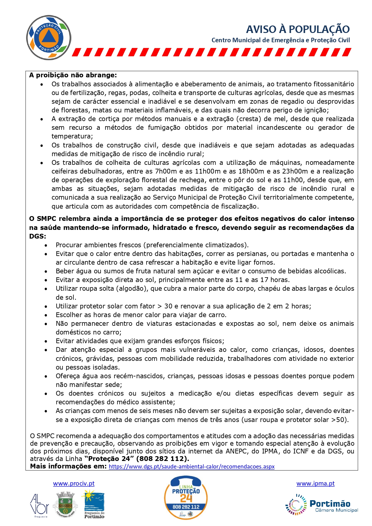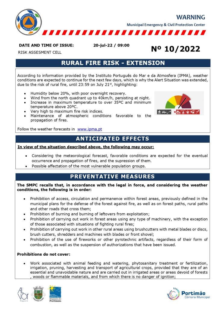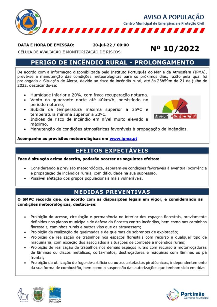 AVISO À POPULAÇÃO – PERIGO DE INCÊNDIO RURAL – PROLANGAMENTO